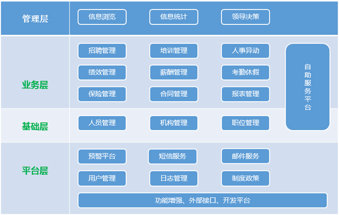 系(xì)统涵盖了HR部门对员工的各(gè)项人事(shì)管理(lǐ),包括基础数据管理、组织管理、人事管理、薪酬(chóu)管理、考(kǎo)勤管理、考核管(guǎn)理(lǐ)、个人自助(zhù)等(děng)业务应(yīng)用单元。